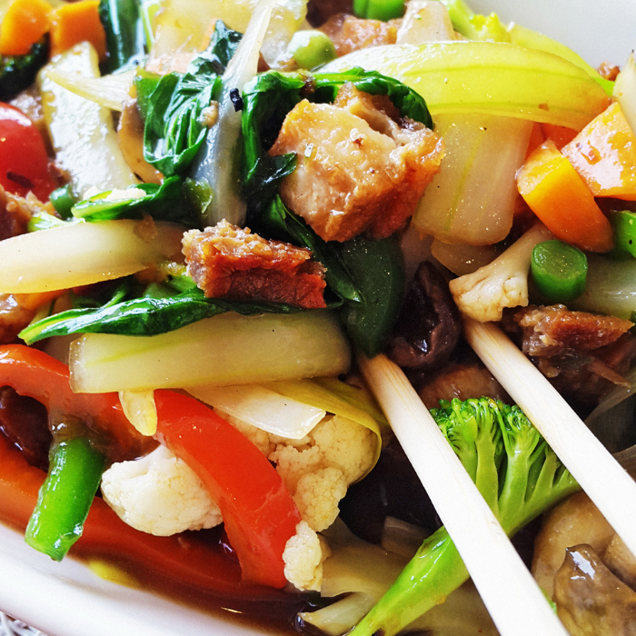 Ditch the meat and make yourself this delicious vegetarian Thai Basil Veggie Stir Fry with a side of sticky rice for a filling, fresh dinner! Happy SUMMER everyone! I know I’m like 2 days late, but this is my favorite time of year and I always extend the celebration. There’s nothing better than the hot
